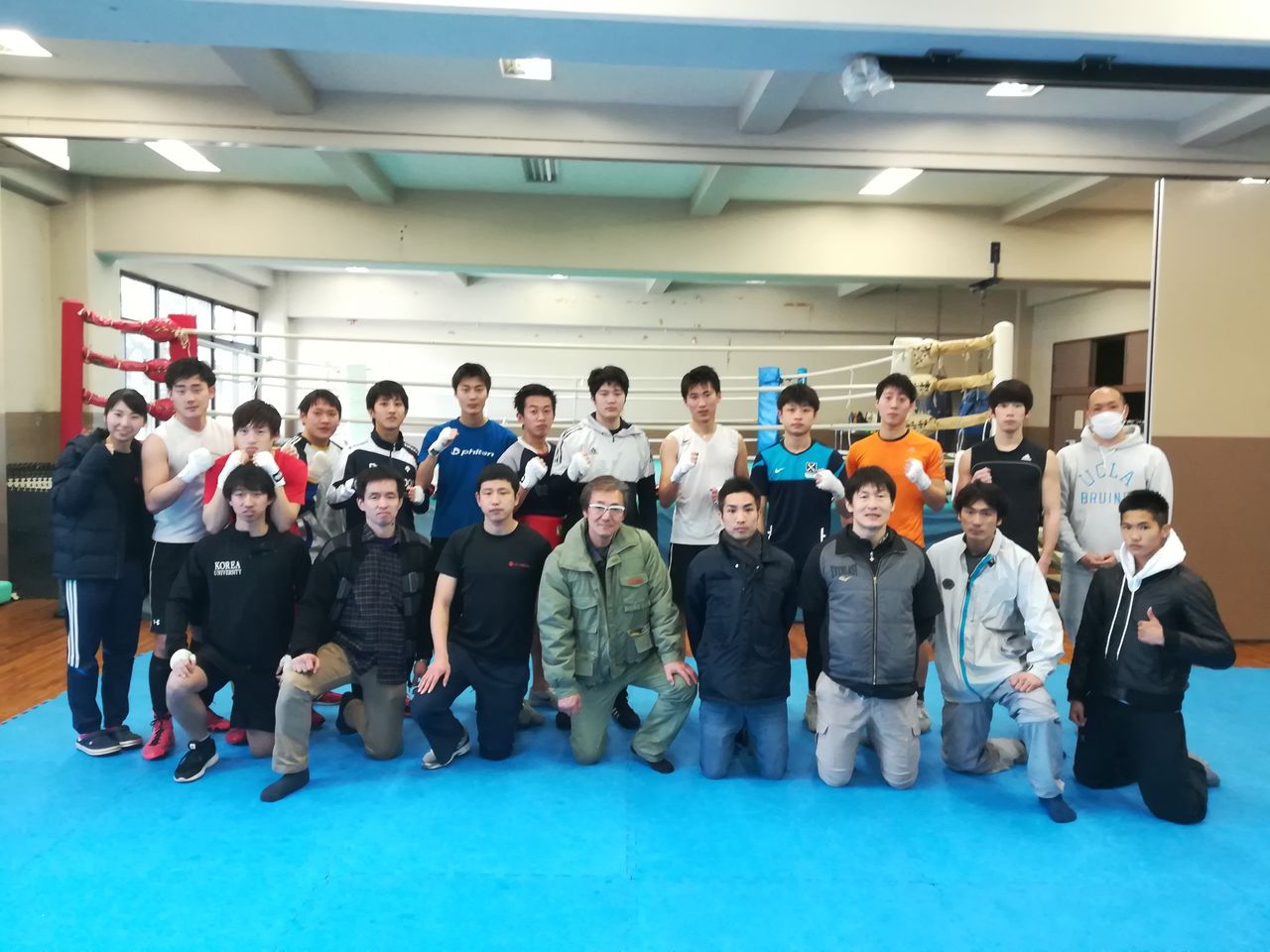 みんなで行なった足踏み練習、肩タッチと膝タッチ、リズムステップも楽しかったし、みんなでリング上で筋トレもやって充実した合同練習でした。